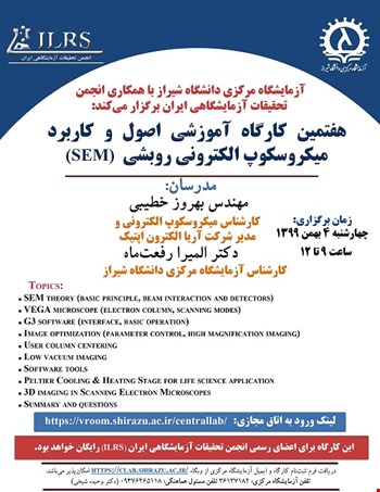 قابل توجه: هزینه شرکت در کارگاهها برای اعضا معرفی شده توسط انجمن تحقیقات آزمایشگاهی ایران رایگان میباشد.